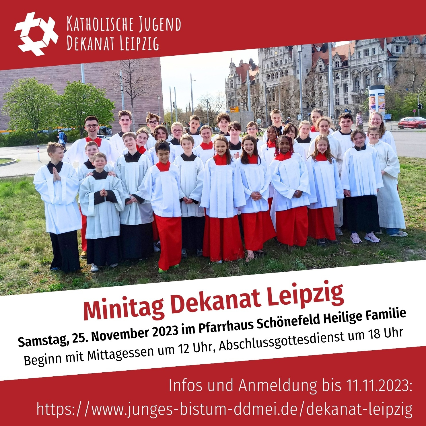 Am Sonntag, den 01. März findet um 11 Uhr die feierliche Verabschiedung von Andreas Goder als langjähriger Leiter der Propstei-Ministrant: innen statt. Zudem wird der Staffelstab weitergereicht an das neue Team bestehend aus Gwendolin Radmacher, Tom Kolb und Ismael Salhi. Dies sind die neuen Ansprechpartner für Feedback, Anregungen und Verbesserungsvorschläge. Alle Ministranten und Ministrantinnen, auch die Ehemaligen, sind herzlich zum Ministrieren eingeladen. Zur besseren Planung würden wir uns über eine Rückmeldung der aktiven via App sowie von den ehemaligen als Mail an freuen.