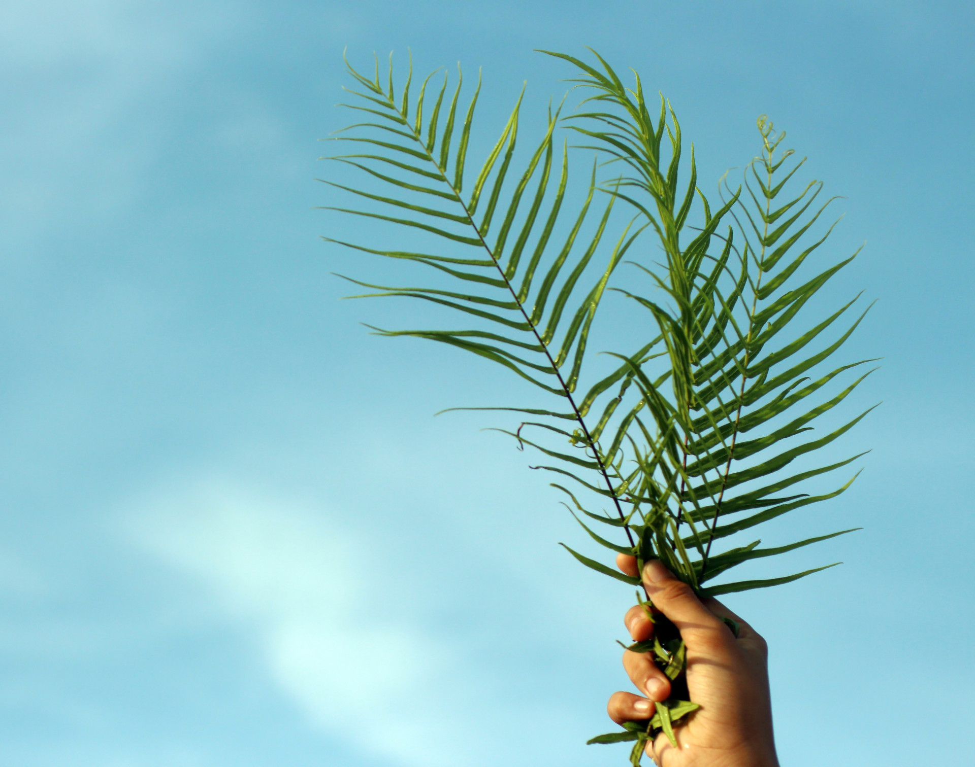In der Andacht wird zuhause das Palmsonntagsevangelium gelesen, es gibt einen kurzen Impuls und die Segnung der Palmzweige.
