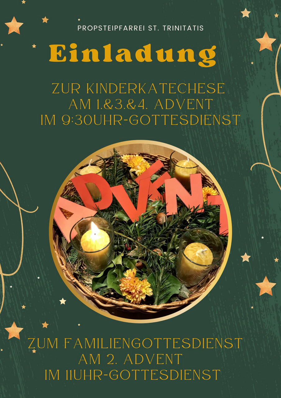 Wir feiern die Sonntagsgottesdienste um 9.30 Uhr am 1., 3. und 4. Advent mit einer parallel stattfindenden Kinderkatechese.