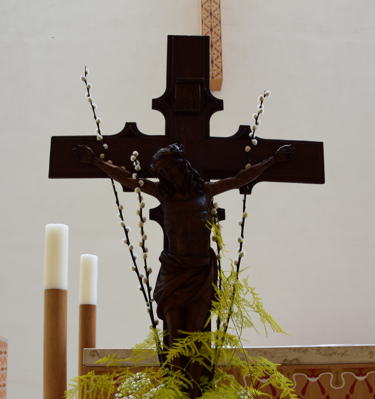 Im Gottesdienst werden Palmzweige gesegnet. Bitte bringen Sie Zweige mit. In einer Prozession ziehen wir in die Kirche.